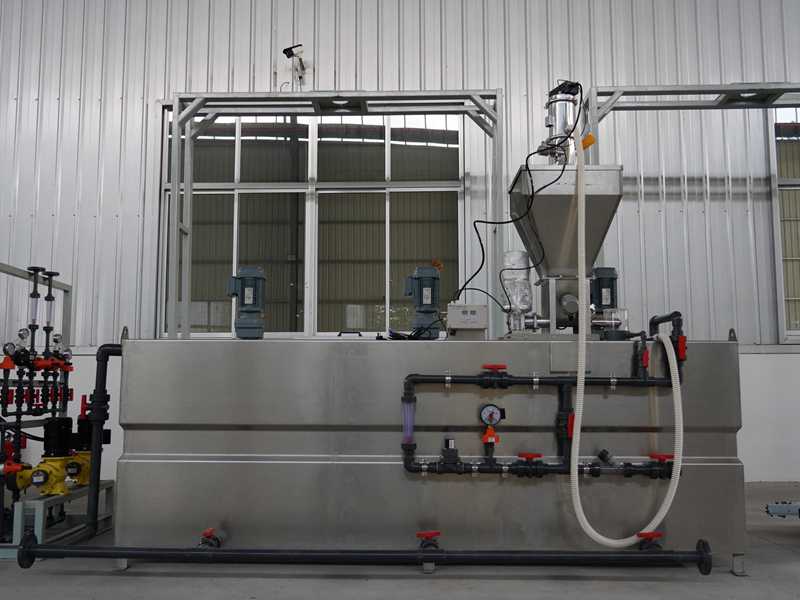 自動化程度高,采用PLC和液位計控制系統,操作簡單、方便;采用單螺旋給料器投加干粉,設備可控制,投料均勻、分散、精準;采用三槽溢流式溶液操作系統,使設備結構簡單、體積小、安裝方便;在規定的生產量及連續投液條件下,所配制溶液的熟化時間在1小時左右,其配制的濃度為0.1%--0.3%;系統穩定可靠,有故障時相關設備會自動按要求停止,同時發出聲光警報。
