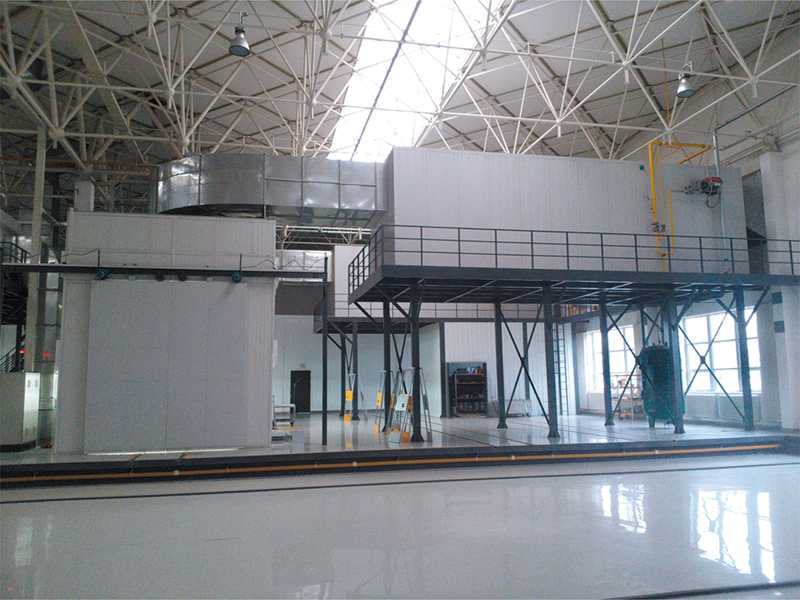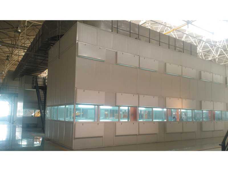 噴漆時,外部空氣經過初級過濾網過濾后由風機送到房頂,再經過頂部過濾網二次過濾凈化后進入房內。房內空氣采用全降式,以0.2-0.3/s的速度向下流動,使噴漆后的漆霧微粒不能在空氣中停留,而直接通過底部出風口被排出房外。這樣不斷地循環轉換,使噴漆時房內空氣清潔度達98%以上,且送入的空氣具有一定的壓力,可在車的四周形成恒定的氣流以去除過量的油漆,從而大限度地保證噴漆的質量。